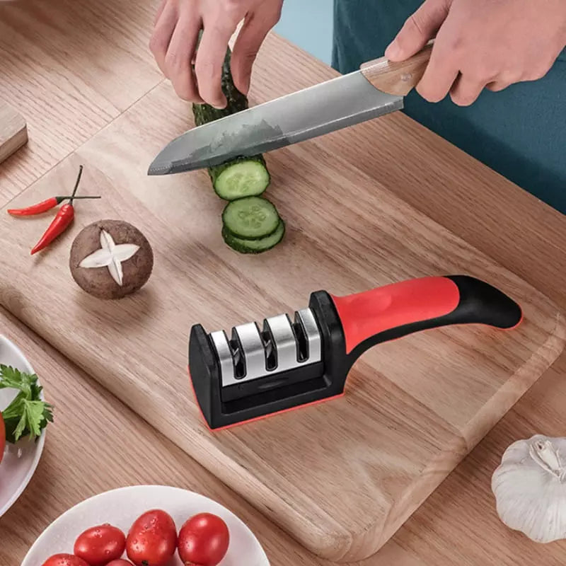 - 1x Afiador de Faca Amolador Manual 3 Níveis;