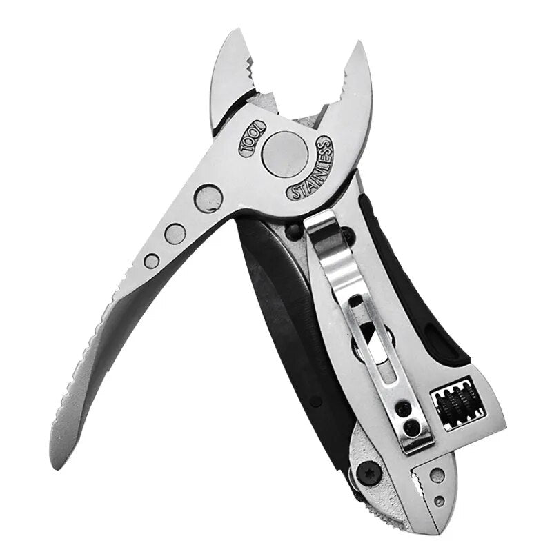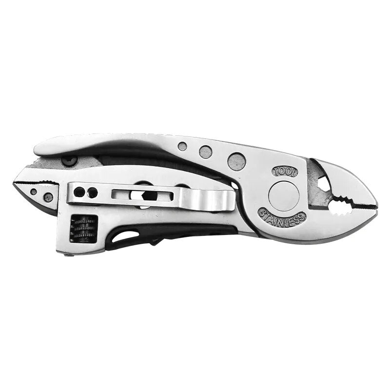 Este alicate é uma verdadeira caixa de ferramentas em um único dispositivo. Ele combina várias funções essenciais, incluindo alicate, cortador de fio, chave de fenda, chave inglesa, canivete e muito mais.