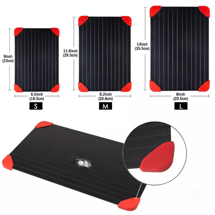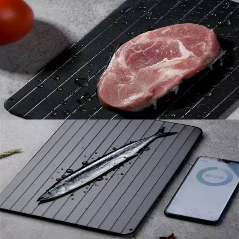A Tábua de Descongelar Carne e Alimentos da Said Express é o item indispensável para sua cozinha. Você pode descongelar carnes, frango, peixe ou qualquer tipo de alimento 2 vezes mais rápido. Não precisa de micro-ondas, água quente e nem precisa ligar na tomada. A tecnologia do alumínio mais teflon fara tudo para você.